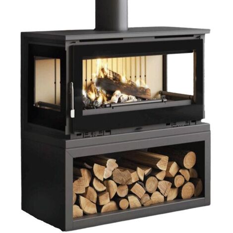 Gefertigt aus hitzebeständigem Stahl (bis 800 °C) und mit einer gusseisernen Tür sowie einem gusseisernen Rost ausgestattet, ist der Ofen besonders robust und langlebig. Die hitzebeständige Glaskeramik-Scheibe (bis 750 °C) bietet eine klare Sicht auf die Flammen, während die integrierte Holzbasis praktischen Stauraum für Brennholz schafft. Mit einer diagonalen Scheitlänge von bis zu 62 cm ist der Ofen ideal für großzügige Räume geeignet. Hergestellt in Spanien, erhalten Sie 3 Jahre Garantie auf Teile, optional verlängerbar auf insgesamt 5 Jahre.